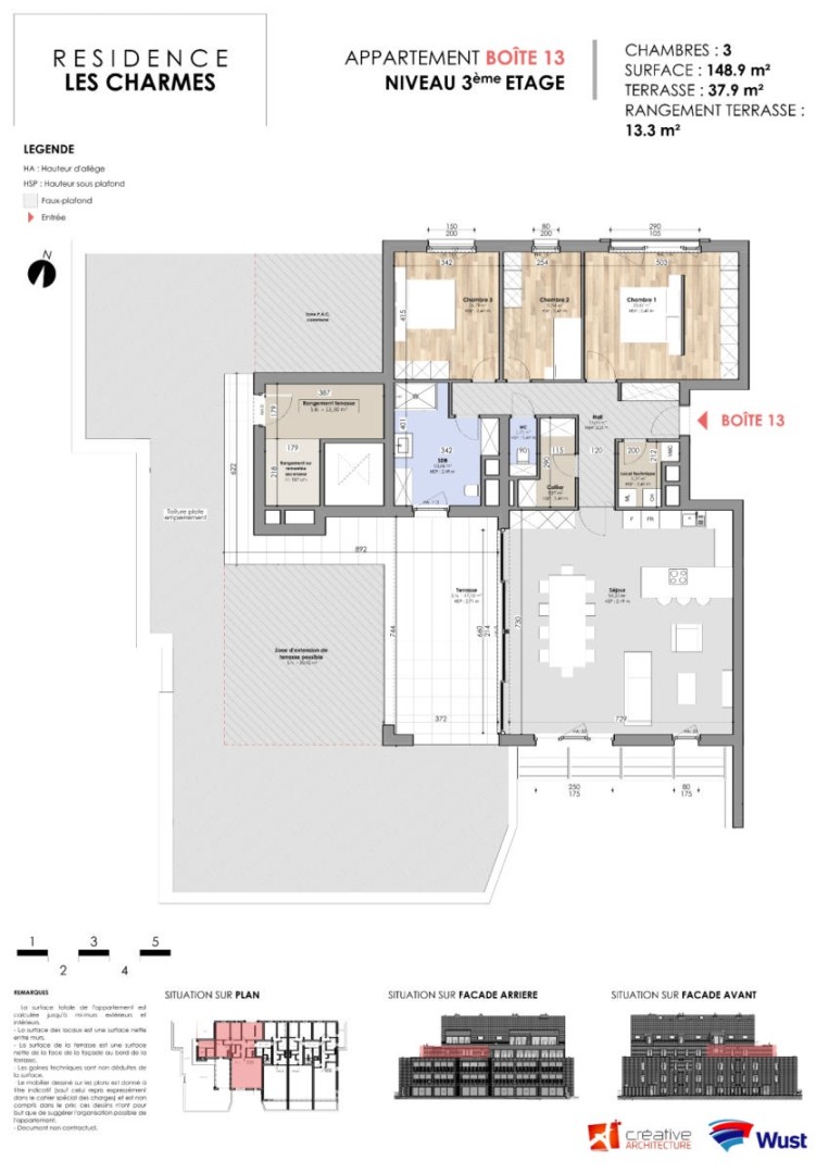 Voici l'appartement de rez-de-chaussée 0.2 qui dispose de 2 chambres à coucher et d'une terrasse de 13 m2 exposée plein Sud. Votre séjour de 46m2 offre une jolie vue sur le jardin. Le prix inclus la pose de revêtement de sol en Quick Step dans les chambres et les peintures (murs et plafonds en blanc) Cave et parkings (en sus) sont là pour votre confort. Jetez un oeil au plan de cet appartement.