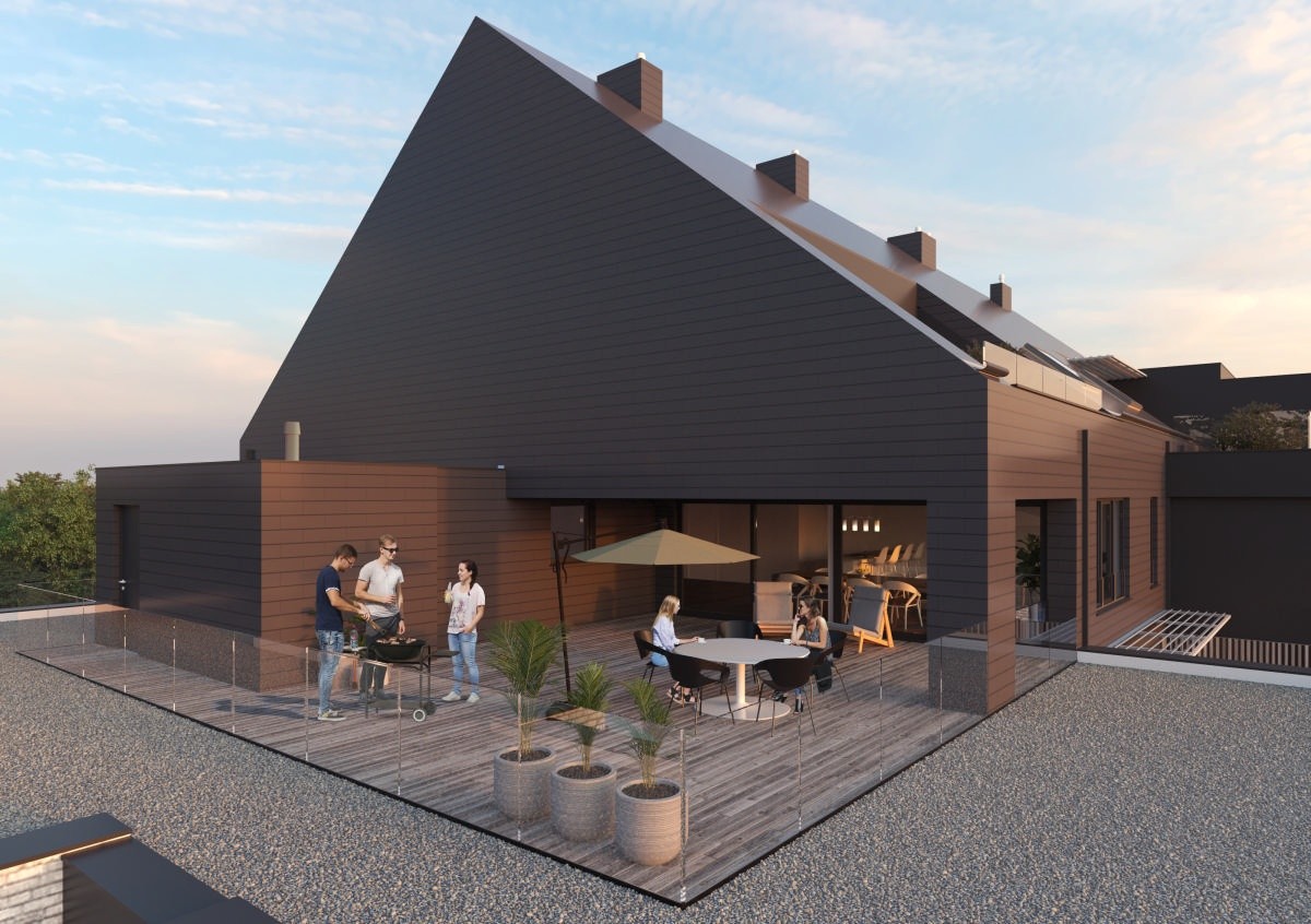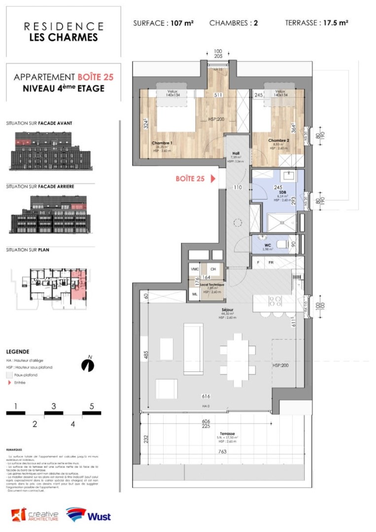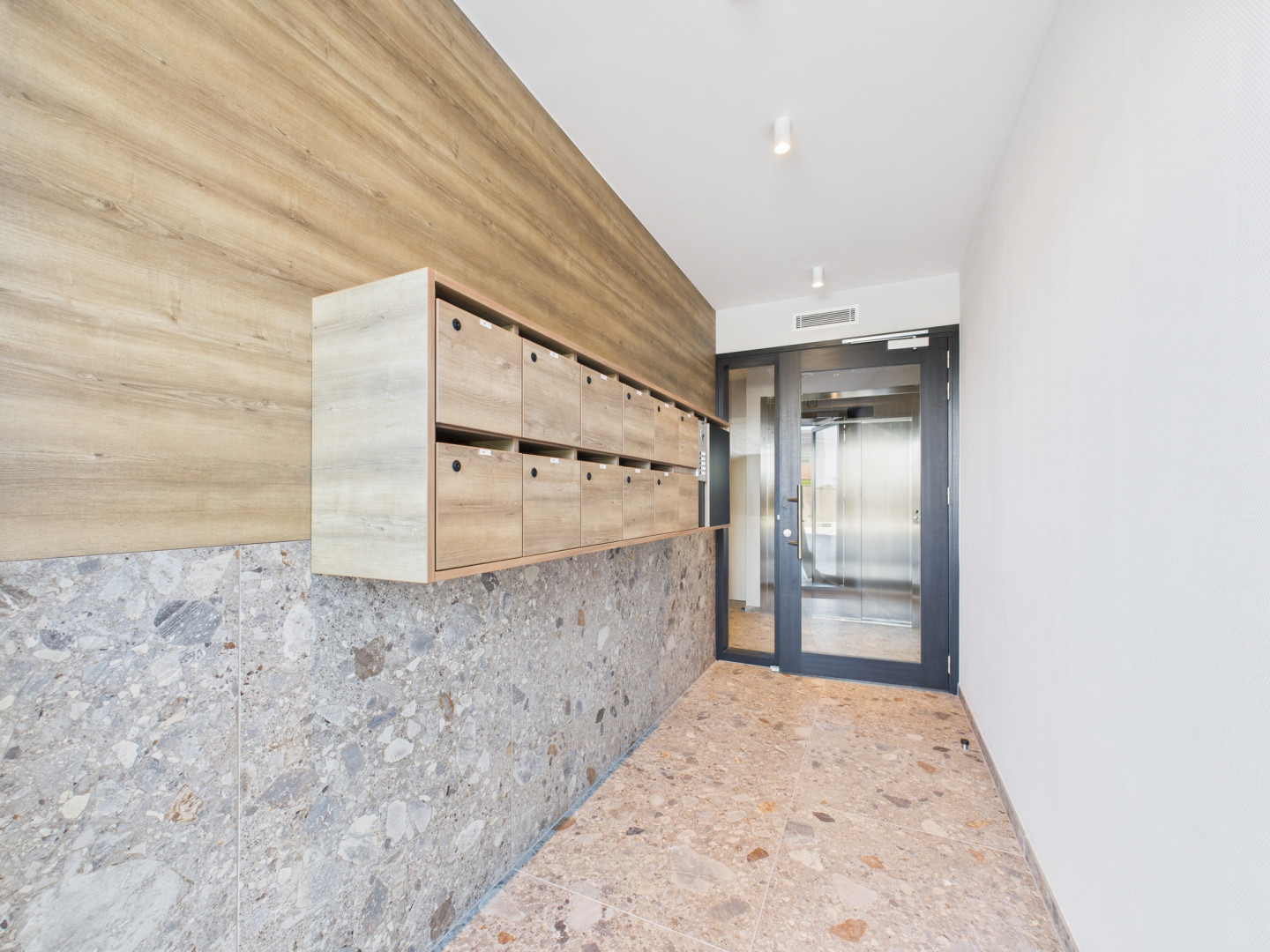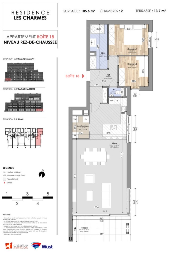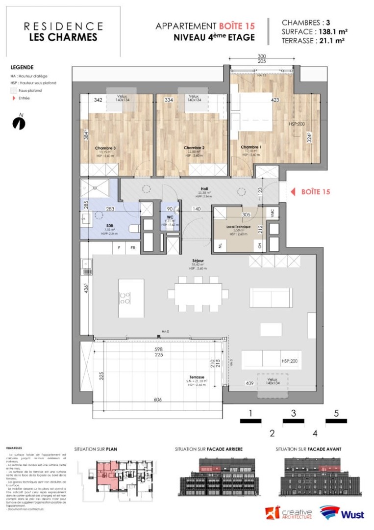 Voici un des appartements du 2ème étage, le 2.4. La terrasse, exposée Sud, fait 12 m2 et offre une très jolie vue. Tous les compteurs sont séparés et certains appartements bénéficient de panneaux photovoltaïques. De grandes baies vitrées offre un joli coup d'oeil sur le jardin et la Fagne. Jetez un oeil au plan de cet appartement.