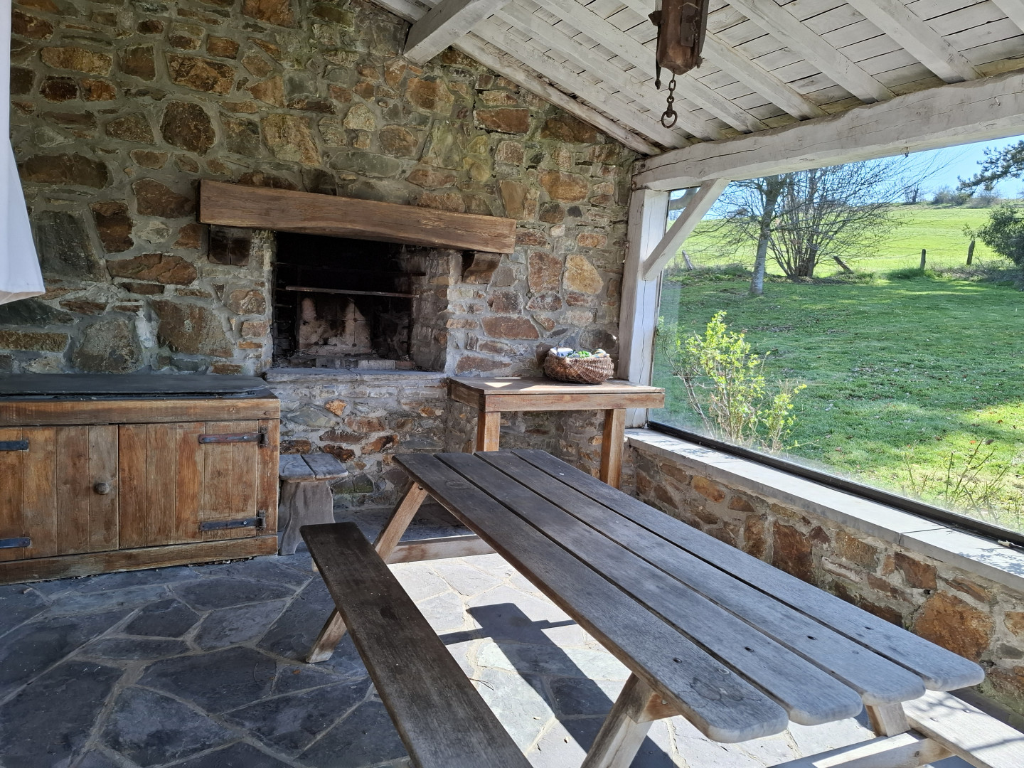 Dès l’entrée, vous découvrez un hall accueillant en pierre bleue menant à un grand living lumineux avec âtre, parfait pour vos moments en famille ou entre amis. La maison propose également un salon, une salle à manger conviviale ainsi qu’une cuisine avec arrière-cuisine.