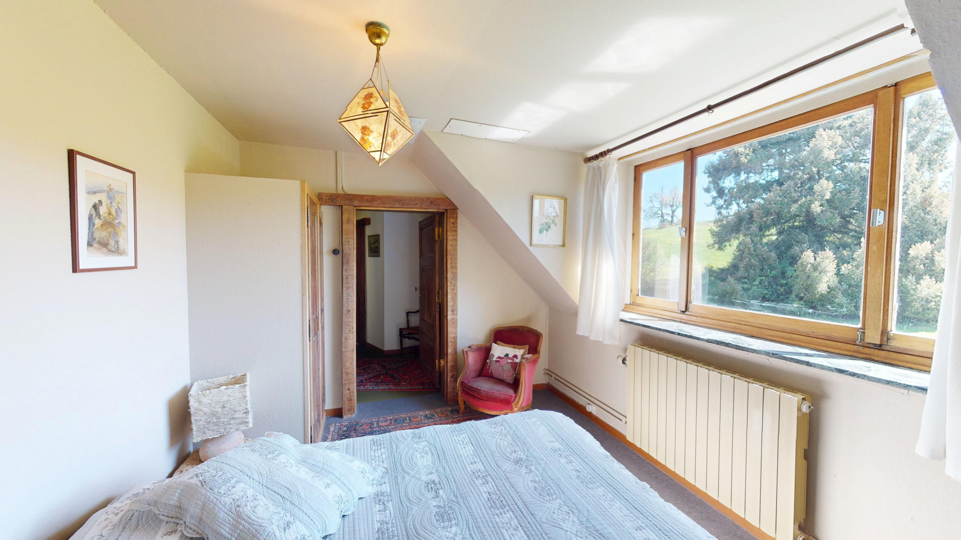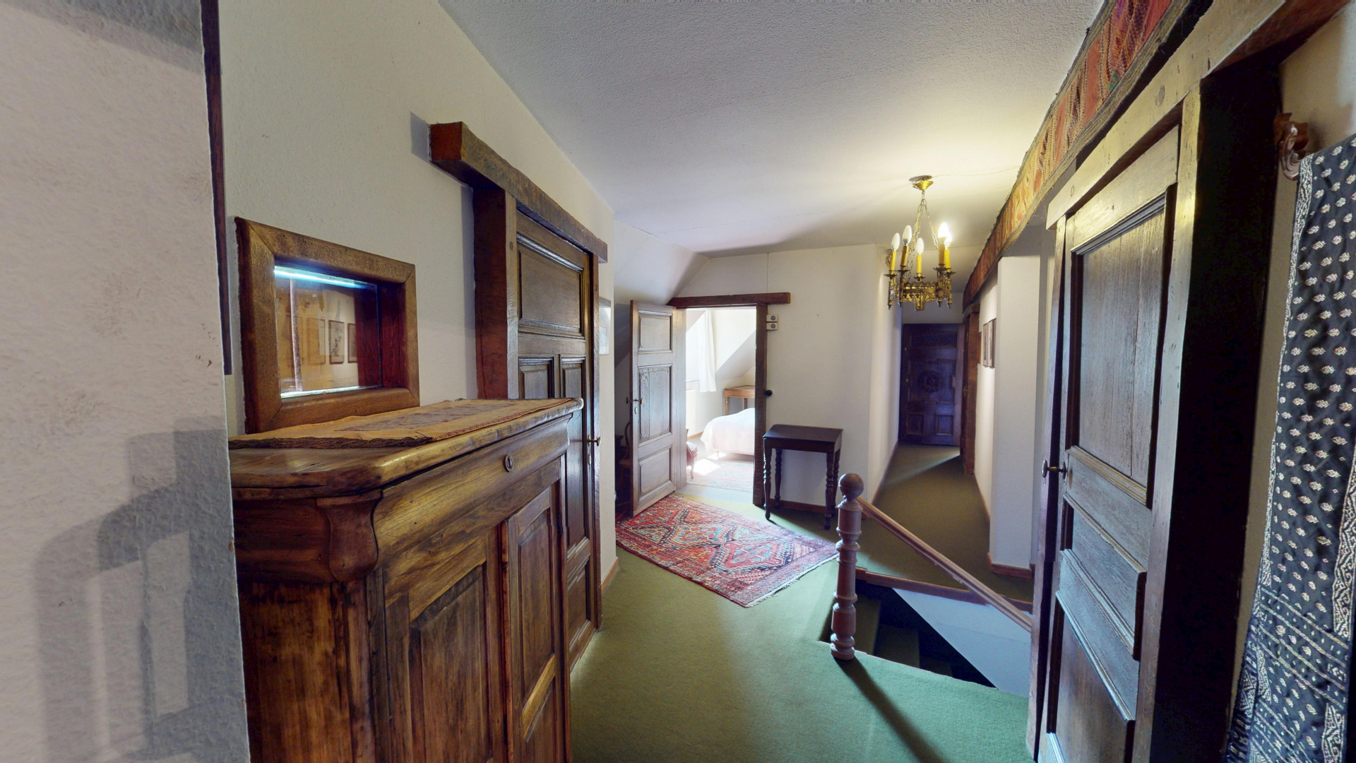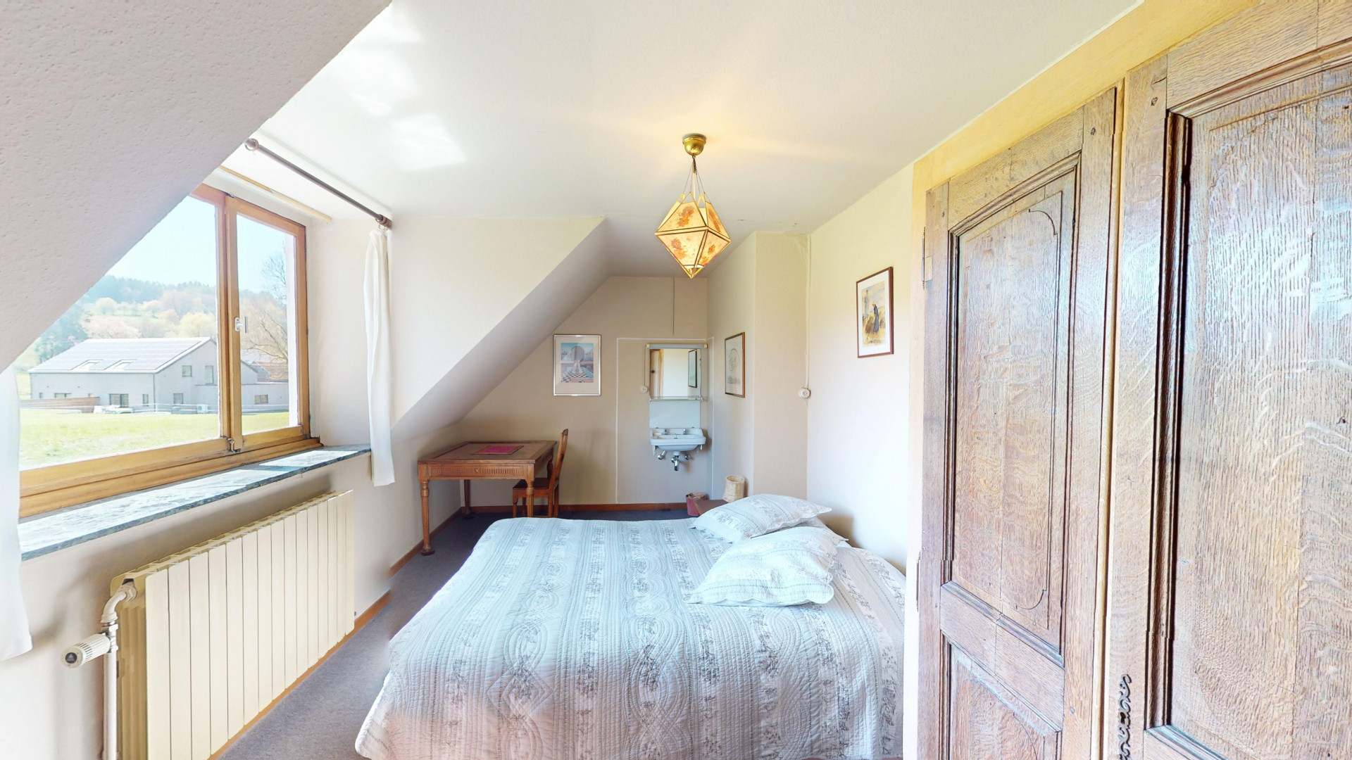 L’espace nuit se compose de 6 chambres avec lavabo, dont une avec salle de bain privative, ainsi qu’une seconde salle de bain au rez-de-chaussée. Un grenier aménageable offre encore de nombreuses possibilités d’extension selon vos besoins.
