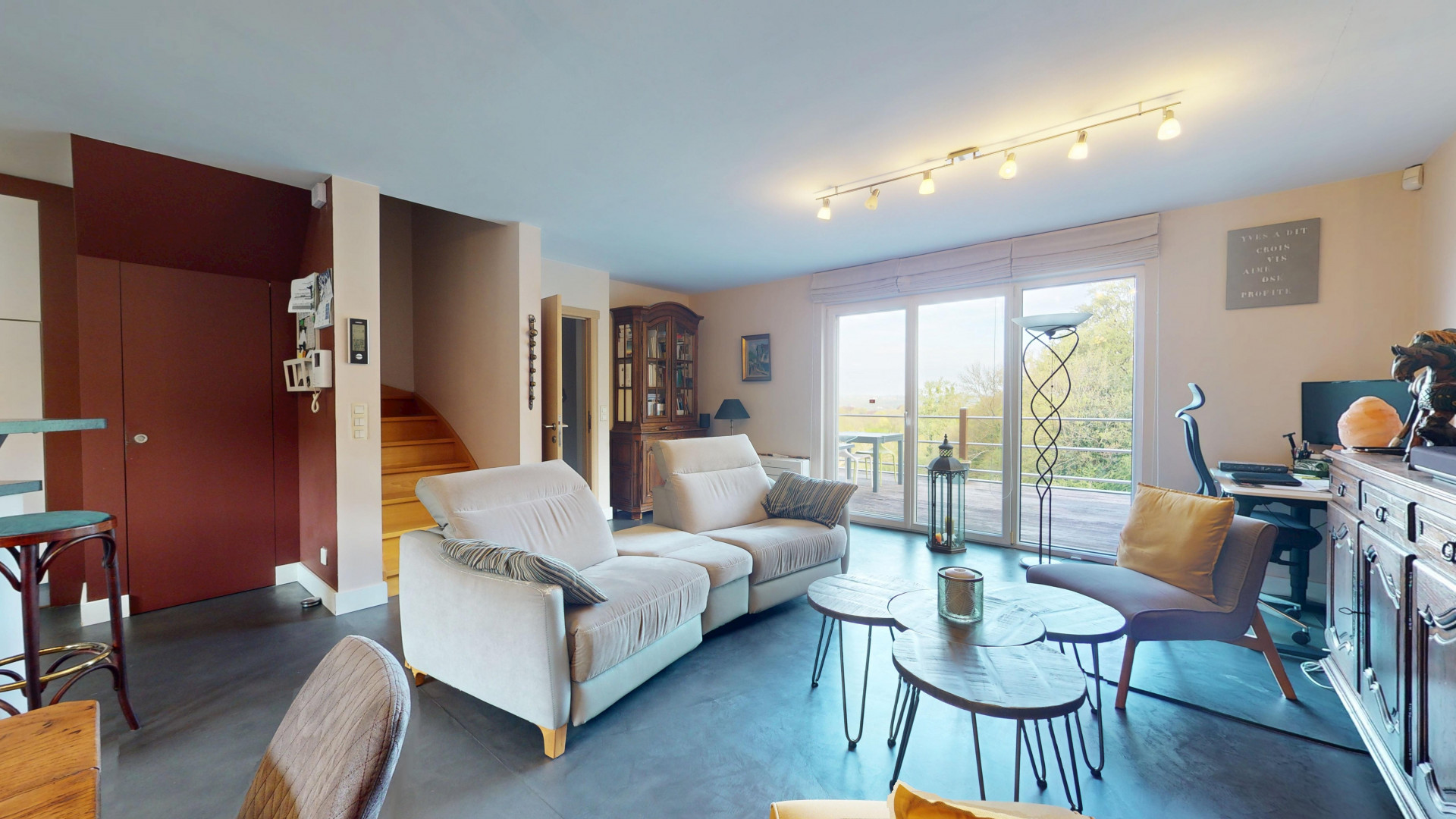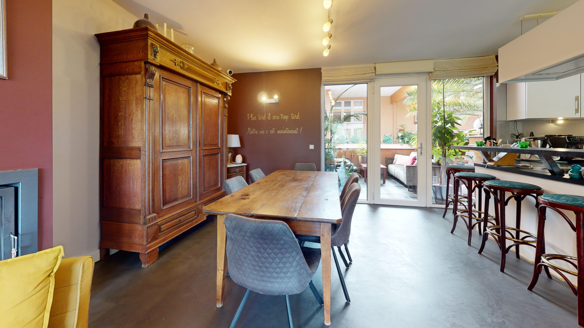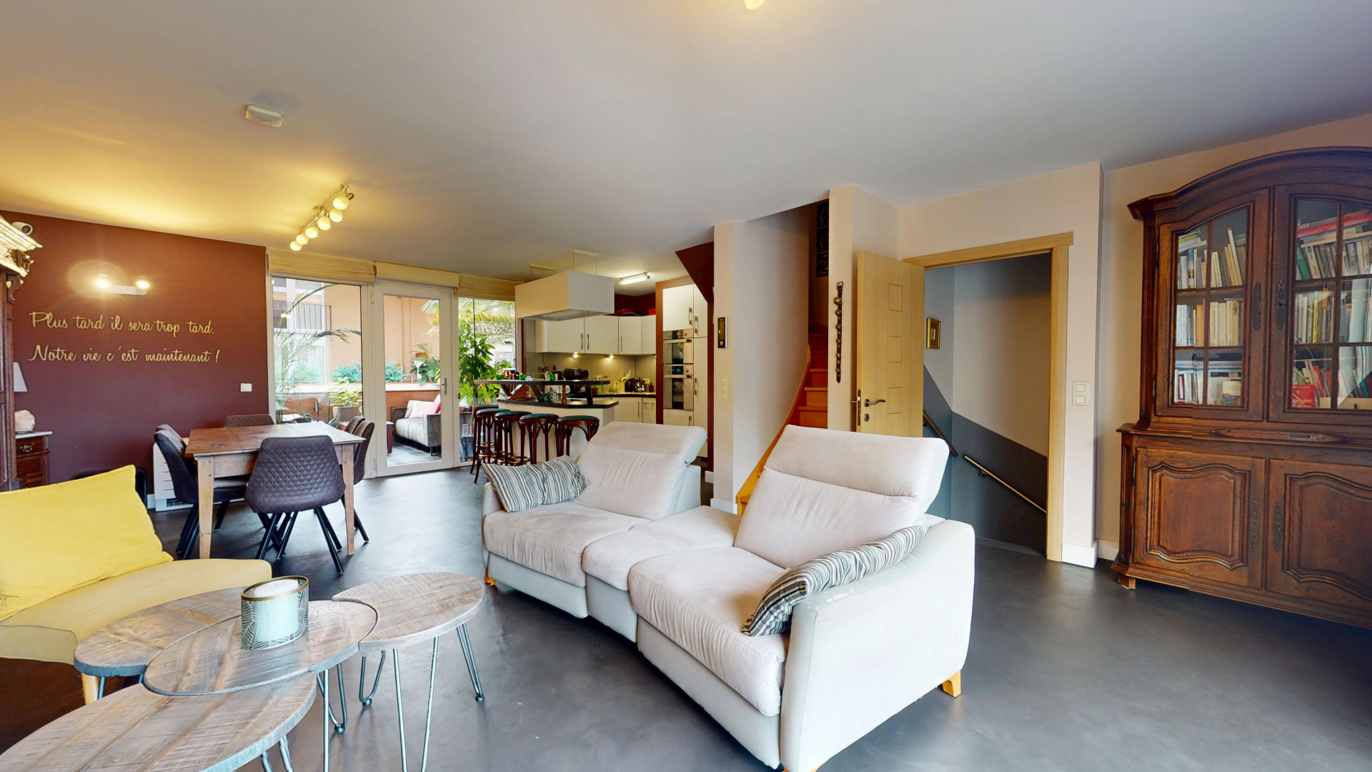 Un vaste séjour baigné de lumière avec cuisine équipée ouverte, idéal pour recevoir en toute convivialité